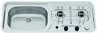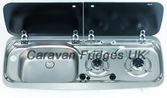 The SMEV MO917L/MO917R caravan and motorhome hob/cooker and sink combination has a safety ignition system, detachable pot grids that are easy to clean, tap fitting outside (taps not included).